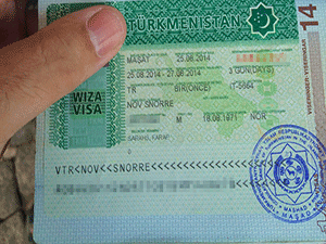 2. Получение визы в Посольстве или Консульстве государства Туркменистан, в исключительных случаях получение визы в аэропорту.Визовая поддержка — официальное приглашение на посещение иностранного государства. Она оформляется лицензированным турагенством и подается в Государственную миграционную службу Туркменистана. Срок рассмотрения документов от 10 до 20 дней, после чего Государственная миграционная службы Туркменистана отправляет документы в Посольство или Консульство государства Туркменистан, где турист планирует получить визу. Срок рассмотрения визы в Посольстве или Консульстве в течении 10 рабочих дней.